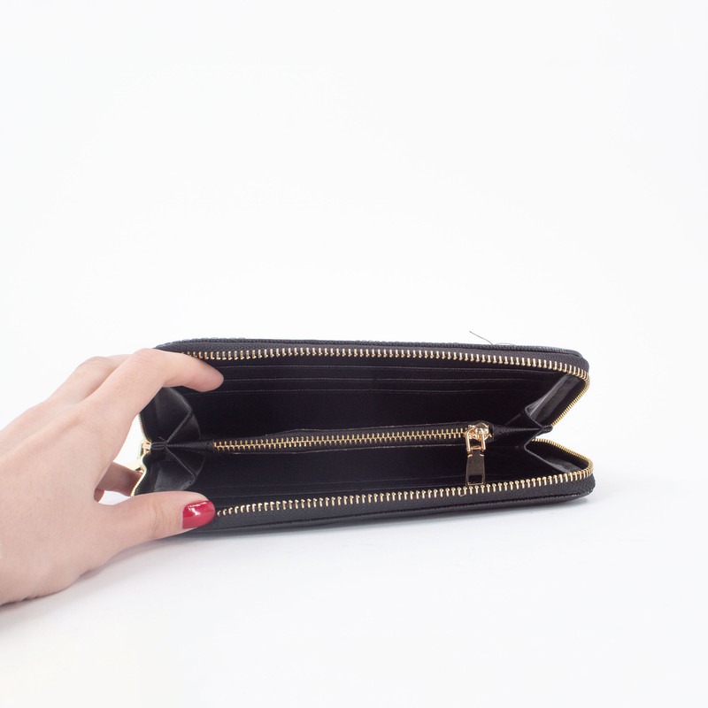 On aime la texture grainée de ce portefeuille à la forme géométrique matelassé très chic. Doté de plusieurs compartiments à carte, il est léger et pratique et se ferme grâce à un zip. Un accessoire qui ne quittera plus votre sac à main!