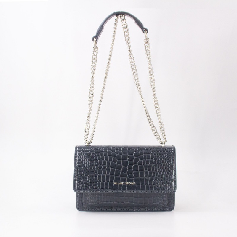 Gros coup de coeur pour ce sac au style épuré et très féminin. Fabriqué dans un similicuir effet peau de crocodile, on aime sa longue bride en chaine pour un porté épaule ou en bandoulière, son rabat à fermeture magnétique, et ses multiples compartiments intérieurs. On adore son coté élégant parfait pour le jour comme pour la nuit