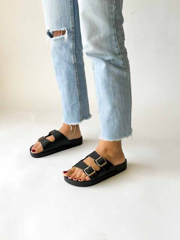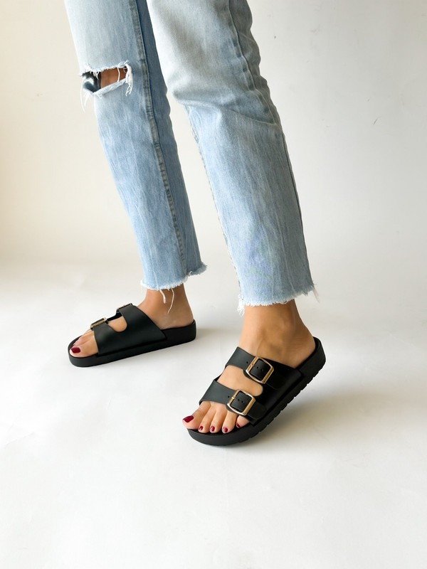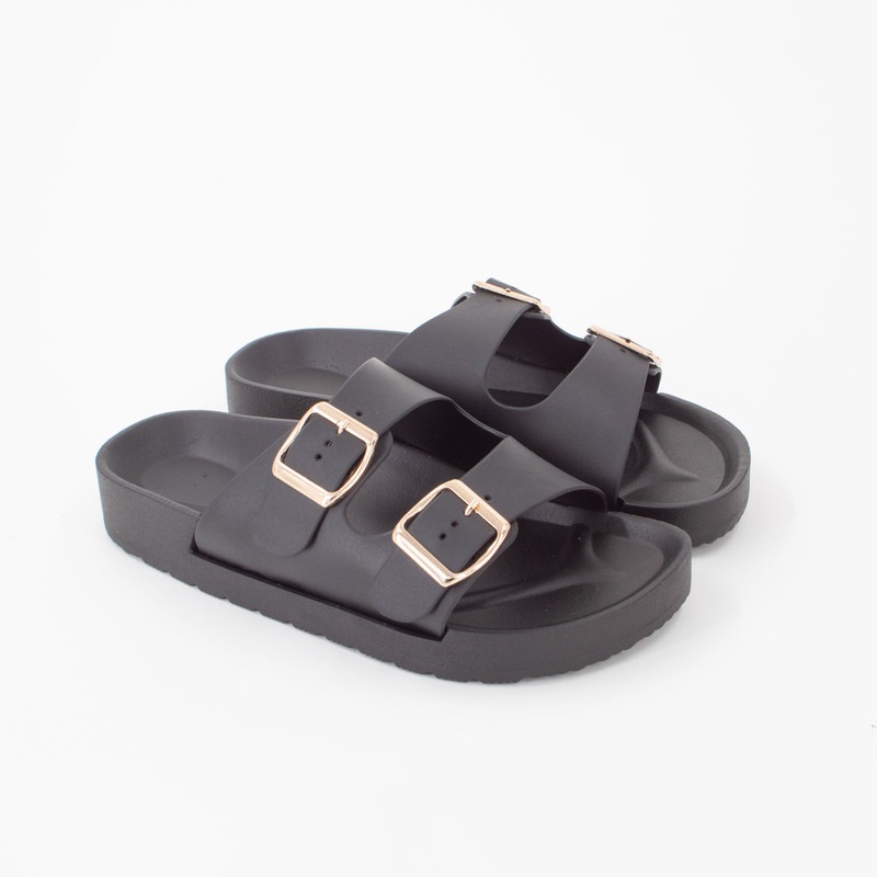 On adore ces sandales plates ultra-confortables en silicone parfaites pour la plage et agrémentées de larges bandes dotées de boucles métalliques pour les ajuster autour du pied, elles sont légères et la touche dorée leur donne beaucoup de glamour!
